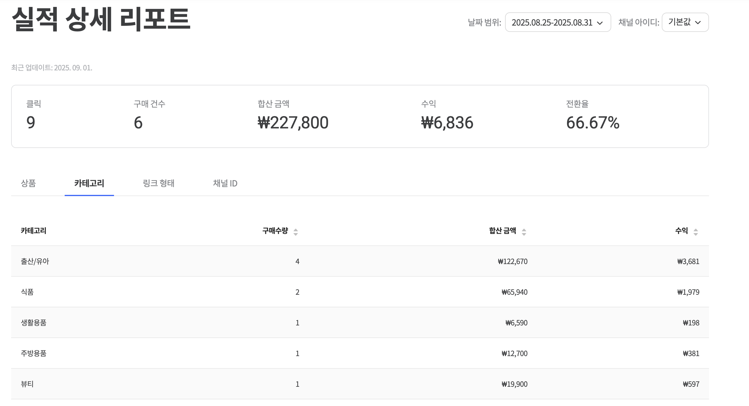 👉 특히 출산/유아 + 식품 카테고리에서 수익이 잘 나왔습니다.