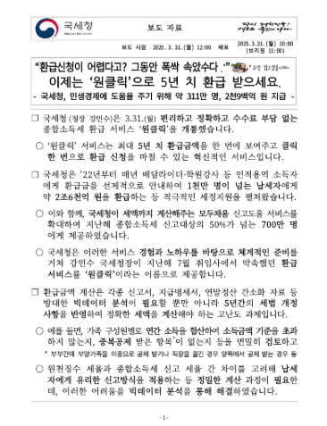 - 최근 5년치 환급 가능 세액 자동 조회