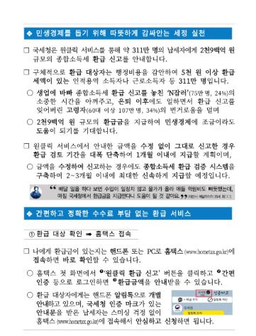 📊 국세청에 따르면, 약 311만 명이 대상이며