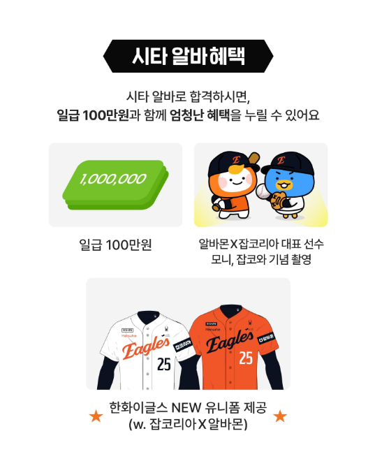잡코리아X알바몬이 준비한 이번 한화이글스 시구 알바·시타 알바는 단순한 알바 그 이상이에요.