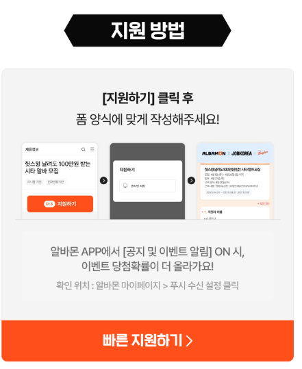 잡코리아X알바몬에서 개별 연락 후 자세한 내용을 안내해드릴 예정이에요.