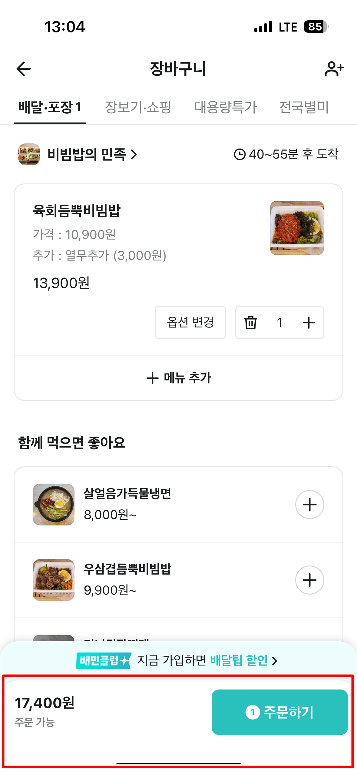 🔍 같은 메뉴(육회듬뿍비빔밥)로 주문 비교해봤어요!