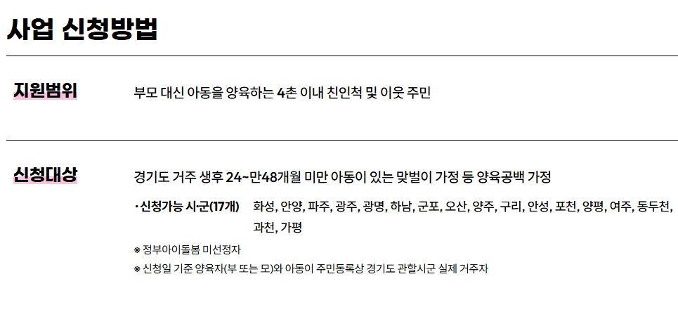 ✅ 경기도 거주 맞벌이 가정 등 양육 공백이 있는 가정